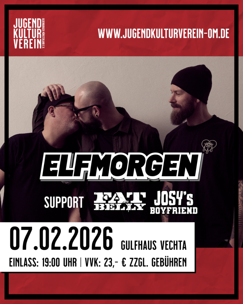Die Jungs von Elfmorgen stehen seit über 20 Jahren für ehrlichen Punkrock mit Haltung ✊ – direkt, emotional und mit klarer Kante gegen Faschismus, Rassismus und Ausgrenzung 🌈. Ihre Texte sind nicht nur laut, sondern auch tiefgründig, voller Ironie, Charme und Haltung 💬🔥.